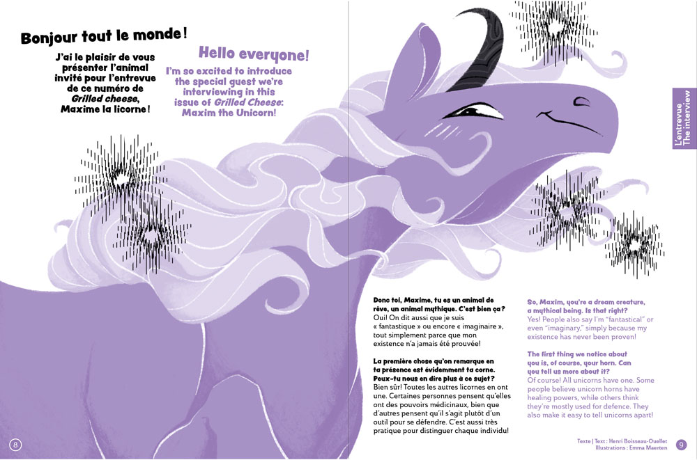 Nous répondons à toutes ces questions (et à plusieurs autres!) dans ce tout nouveau numéro de Grilled cheese. Tu trouveras aussi dans ton magazine une histoire à faire rêver, un découpage incroyable, une entrevue avec une licorne et des images qui s’animent comme par magie. On croirait rêver!