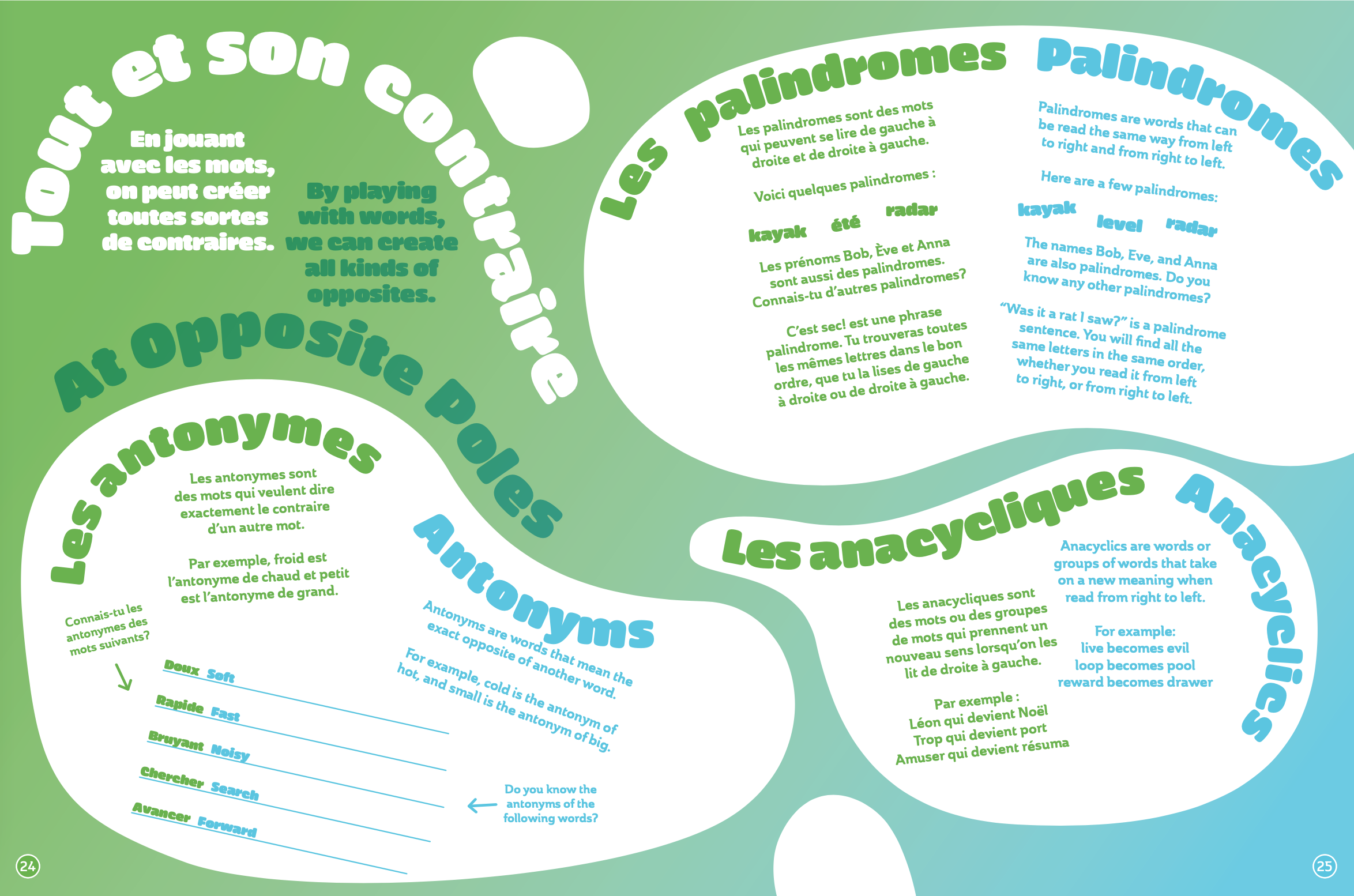 Here’s a brand-new issue of Grilled Cheese, where you’ll discover all kinds of things and their opposites. Visit the Oppositorium with Milo and Nola, and meet Fleur and Noah, two animals who are complete opposites… or almost! You’ll also get to build an Oppositron, play with words, and try your luck at the game of Ladders and Snakes.